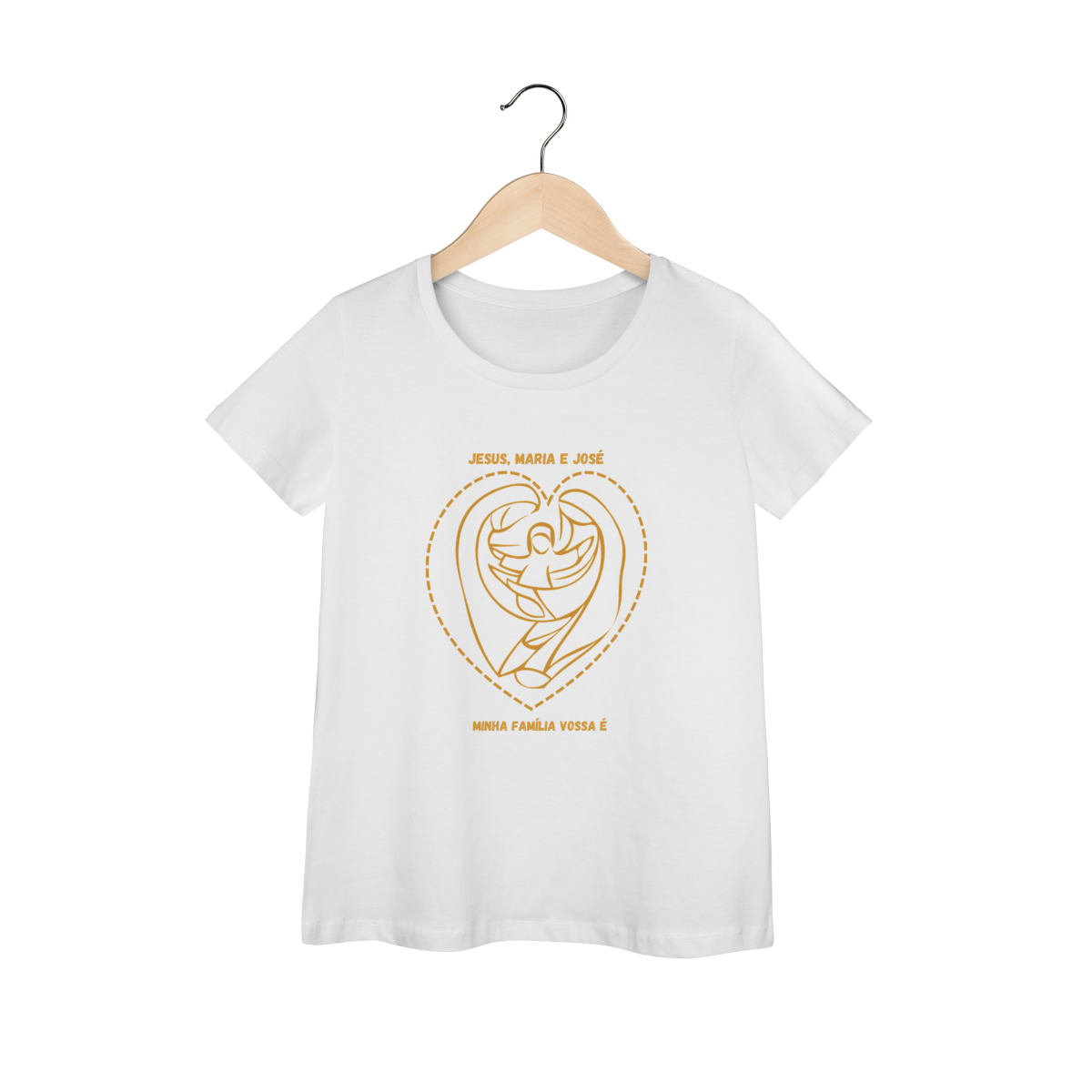 Vista a beleza e a força da Sagrada Família com a Camiseta Jesus, Maria e José  - Minha Família e leve mensagens de fé e amor por onde for.