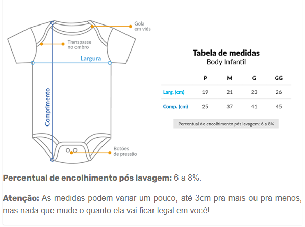 Cores do produto: Como cada tela de computador ou celular tem seu próprio jeito de mostrar cores, então a cor da sua camiseta e da estampa pode ser um pouco diferente do que você viu online.