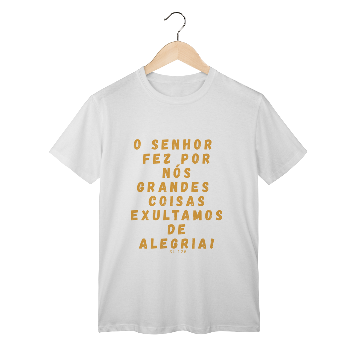 Leve a promessa de alegria e bênção para o seu dia com a Camiseta Unissex T-Shirt Classic -Salmo 126. Com desenho minimalista em dourado e referência ao salmo que fala sobre restauração e felicidade, essa peça é ideal para quem deseja vestir mensagens bíblicas.