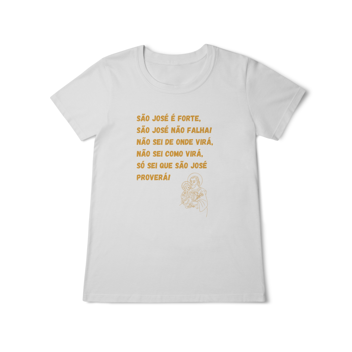 Mostre sua devoção com a Camiseta Feminina Baby Long Classic - São José é Forte (Jaculatória). Com desenho minimalista em dourado e a jaculatória dedicada ao padroeiro da Igreja, essa peça é um ato de fé e inspiração.